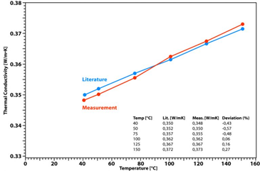 Another test demonstrates the temperature-dependent behavior of the effective thermal conductivity of Vespel™
