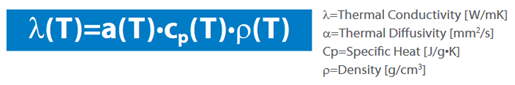 - Thermal diffusivity range (α): 0.01–2000 mm²/s