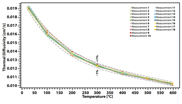 Within the temperature range from RT to 600°C, the measured thermal diffusivity deviation remained within ±1%,