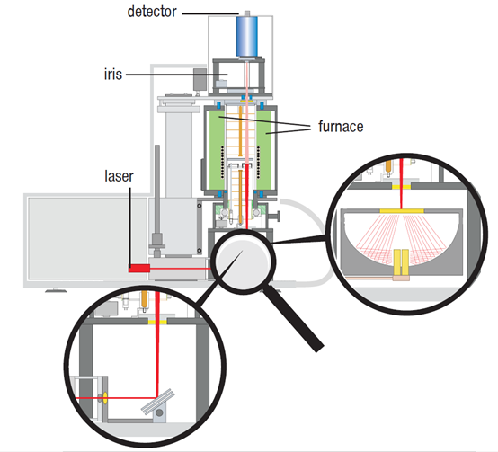 The sample is placed on the sample robot inside the furnace, and the furnace is maintained at a preset temperature. At this temperature, one surface of the sample is irradiated by a programmed energy pulse (laser or xenon flash), causing a uniform and transient temperature rise on the sample surface.