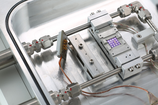 The basic system consists of a pre-structured measurement chip for rapid sample placement and a measurement chamber providing environmental control. Depending on application requirements, lock-in amplifiers and high-field electromagnet modules can be integrated. Most measurements are performed under UHV conditions, while LN2 cooling and heaters allow precise temperature control from -170°C to 280°C.